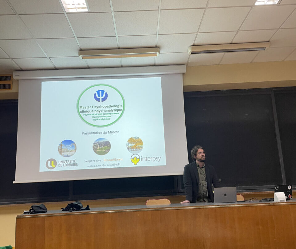 Le 22 janvier salle Claude Guérin sur le CLSH, l’équipe pédagogique du master de psychologie clinique, parcours psychodynamique, a réuni les étudiants de 1ère et 2ème année. La nouvelle offre de formation de la rentrée 2024 leur a été présentée, et plus particulièrement la nouvelle mention du master qui les concerne, le master de Psychopathologie clinique psychanalytique.